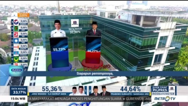 Hasil Hitung Cepat Sementara, Jokowi Unggul dari Prabowo